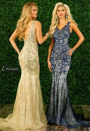 Envious Couture E1497 v neckline beaded embroidered and glitter tulle mermaid prom dress evening gownÂ