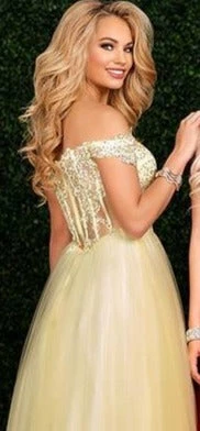 Envious Couture E1489 is a Long Prom Dress, Pageant Gown & Formal Evening Wear. This Gown Features Lace Embellished off the shoulder straps with a sweetheart neckline. Sheer Corset style bodice with beaded Floral lace applique and tulle prom dress evening gown pageant dress E 1489 A Line Ballgown Romantic
