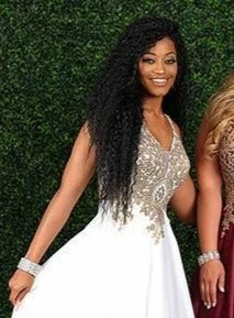 Envious Couture E1512 is a Long A line Prom, Pageant & Formal evening dress. Featuring embellished Applique Accents along the Bust & Bodice, Plunging neckline with mesh insert. Open v back. High waist a line skirt with beaded appliques cascading into the skirt. E 1512