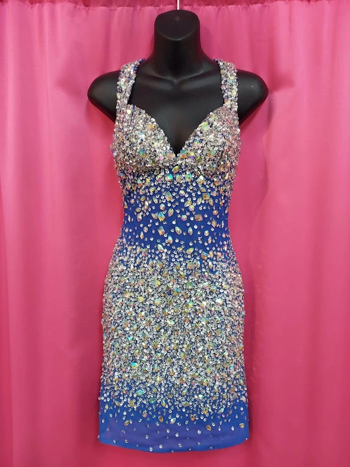 Epic Formals by Karishma Creations 3905 Size 0 Royal Short Sheer Formal Cocktail Dress Backless Rhinestone Embellished Gown