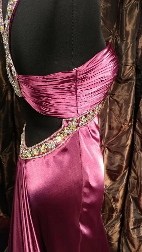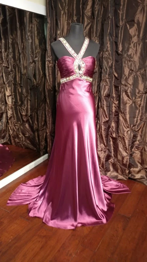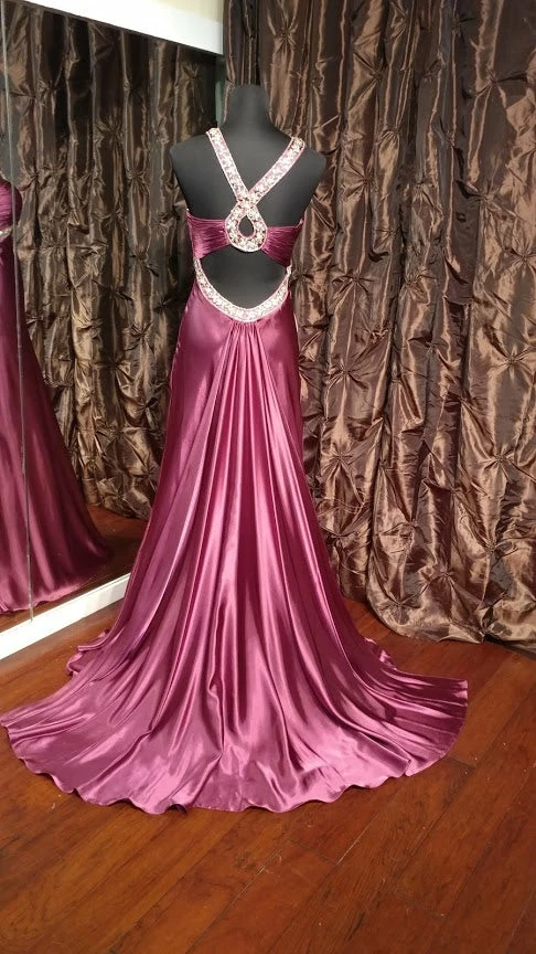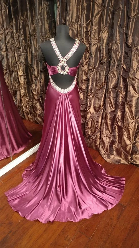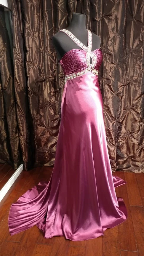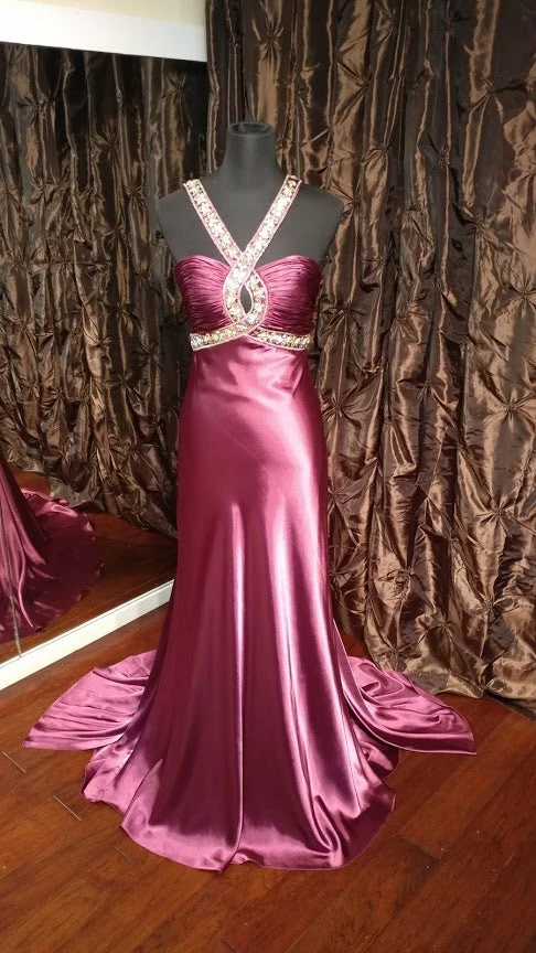 Jasz Couture 4575 Elegant pleated bodice evening dress with dazzling beaded trim with sexy loop cutout on the back featuring a waterfall sweeping train.