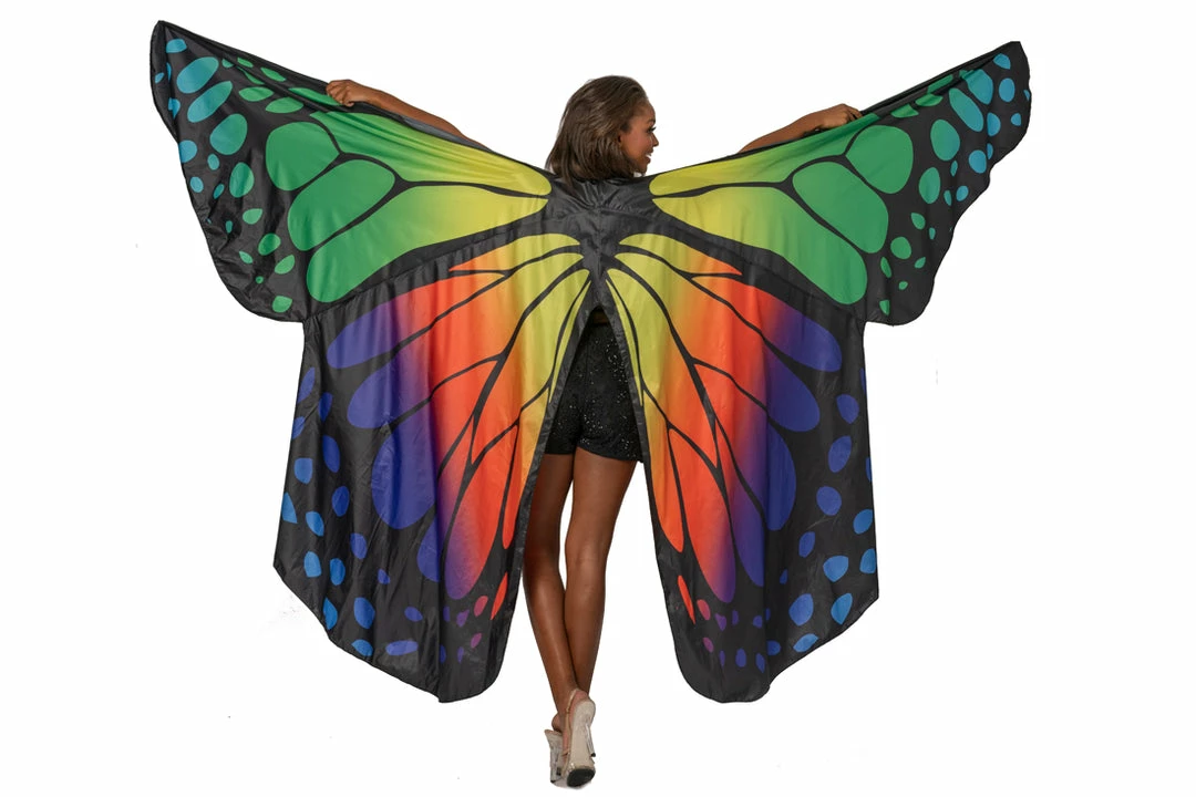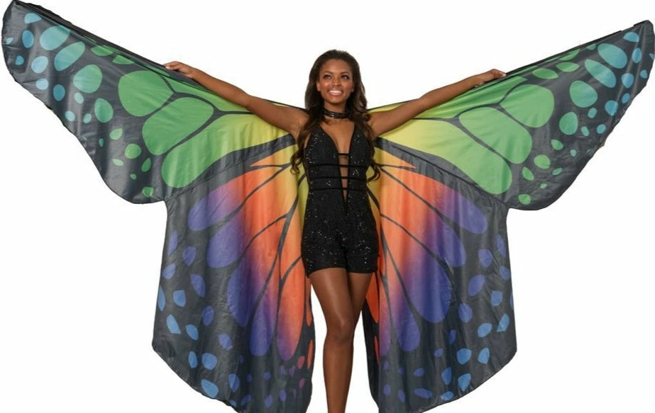 Johnathan Kayne 2100 is a Butterfly Wings Romper Crystal Embellished Lace Romper. Featuring a Plunging neckline with a mesh insert and sheer cutout side panels. Horizontal Waist accent belts. Eyelash Lace fun Fashion Pageant romper. Featuring a Monarch Butterfly Halter Cape with extended reach. (Removable)Â