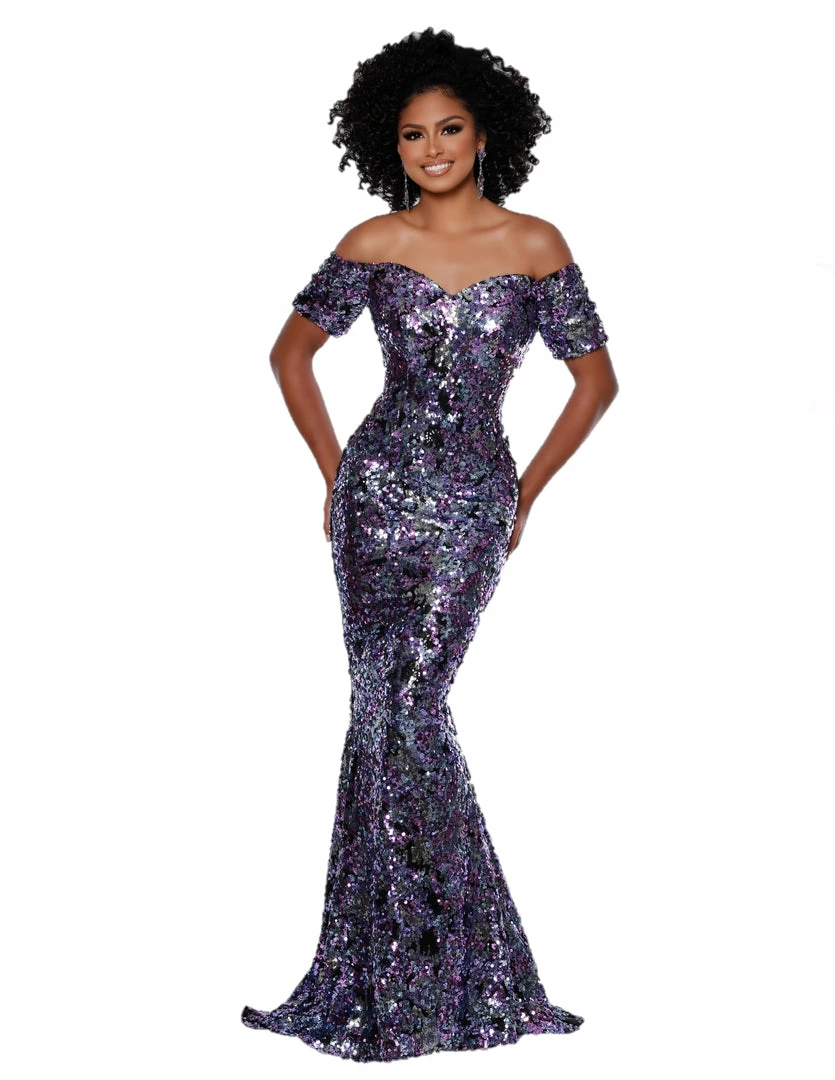 Johnathan Kayne 2417 Long Fitted Sequin off The shoulder Dress Formal Gown