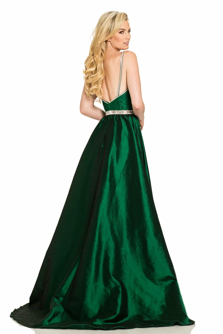 Johnathan Kayne 7242 is a lace Prom Dress, Pageant Gown & Formal Evening Wear. The structured bodice of this A/B crystal adorned stretch lace gown offers excellent, supportive construction. The column skirt falls over the hip and is framed by the dramatic taffeta hostess skirt that flows around the body.