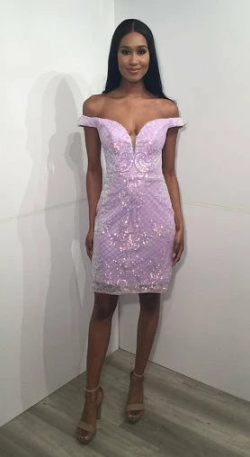 Jovani JVN05251 – JVN 05251 is a short fitted homecoming cocktail dress. Featuring a sweetheart off the shoulder neckline. This Fun Formal evening gown has a slightly plunging v neckline with mesh insert. Elaborate scroll sequin pattern with multi dimensional embellishments adds a pop to any event!