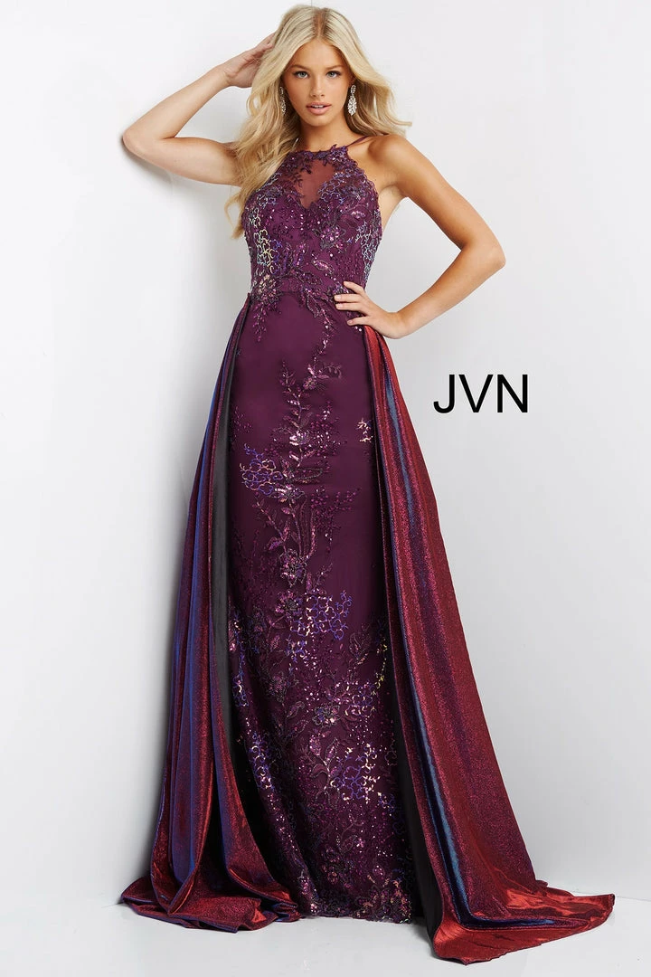 Jovani JVN07379 Long fitted Prom Pageant Gown Overskirt Shimmer Sequin Lace Gown JVN07379 Straight Prom Pageant Gown