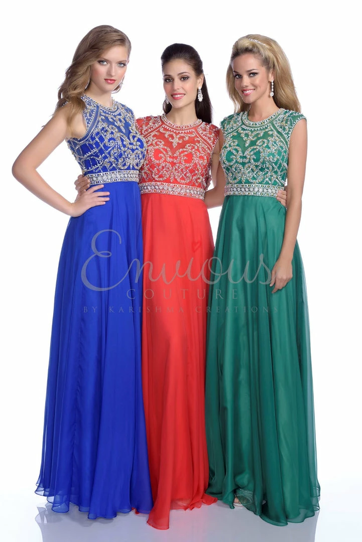 Envious Couture 16262 Royal Chiffon Size 4 embellished top cutout open back flowy chiffon prom dress pageant gown evening dressΒ