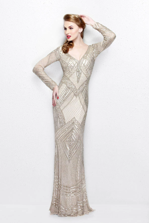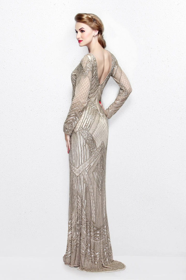 Primavera Couture 1740 long sleeve fully sequined prom dress.