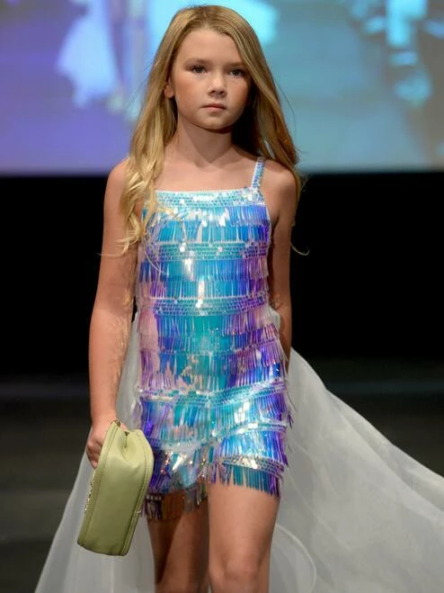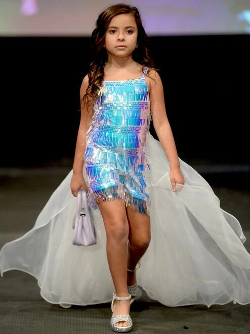 Marc Defang 5010 Short Girls Sequin Romper Fun Fashion Overskirt Pageant KidsÂ