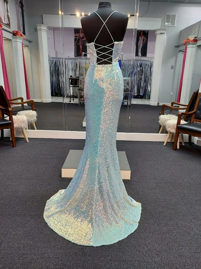 Jovani 3263 Long Fitted Mermaid Sequin Prom Dress Pageant Gown V Back Mermaid Dresses