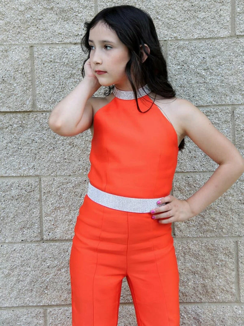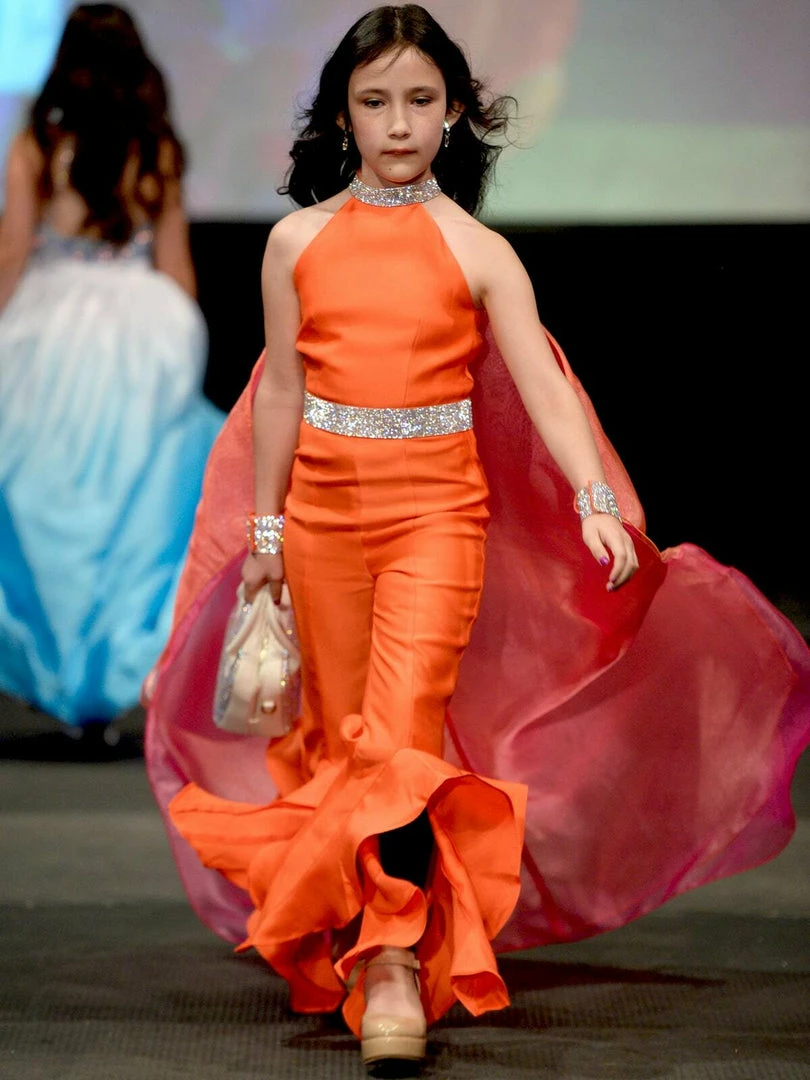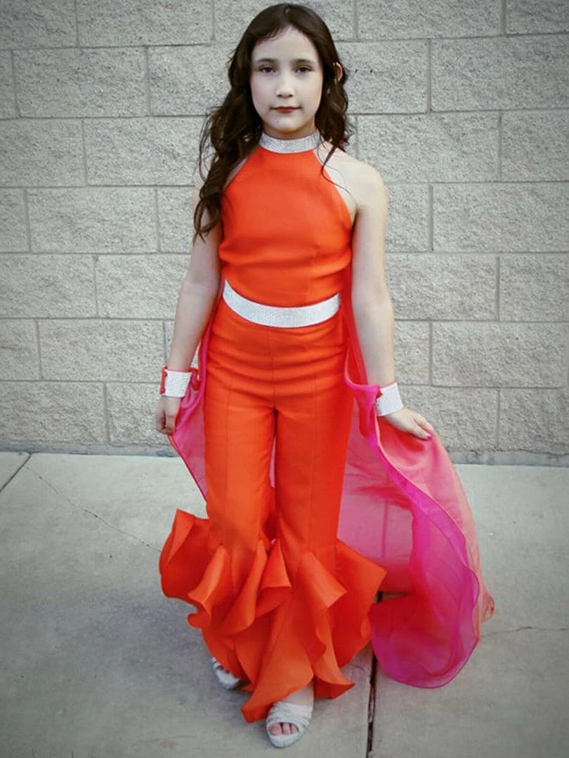 Marc Defang K8032 Girls Jumpsuit Cape Crystal Cuff Choker Pageant Fun Fashion