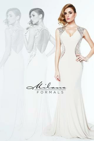 Elegant v neckline fitted evening gown with an open back sheer embellished cutout sides stretch jersey prom dressÂ