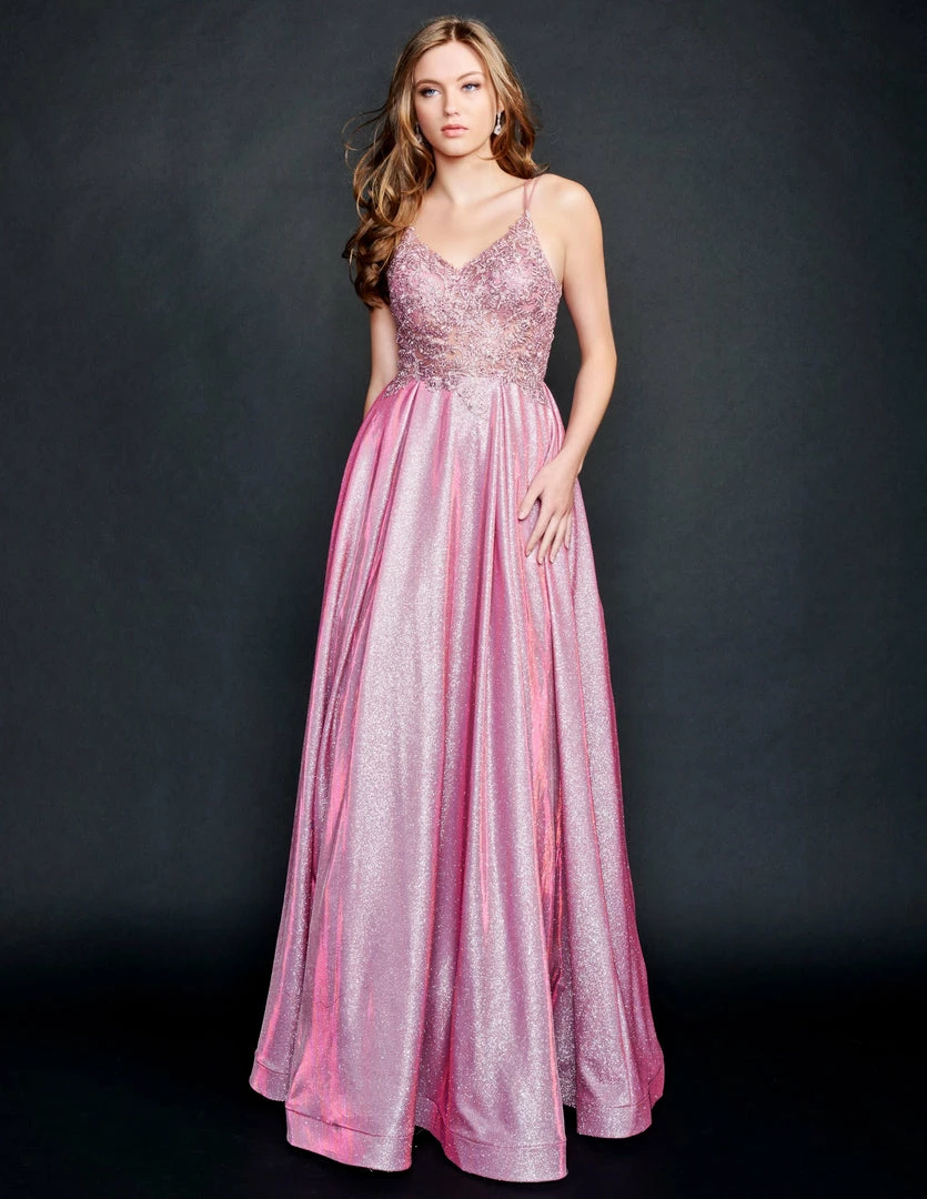 Nina Canacci 3186 Long Shimmer Sheer Lace Ballgown Prom Dress Pageant Gown