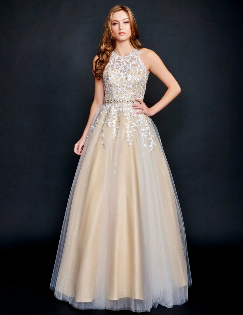 Nina Canacci 3188 Long Lace A Line Ballgown Prom Dress Pageant Gown High Neck Formal