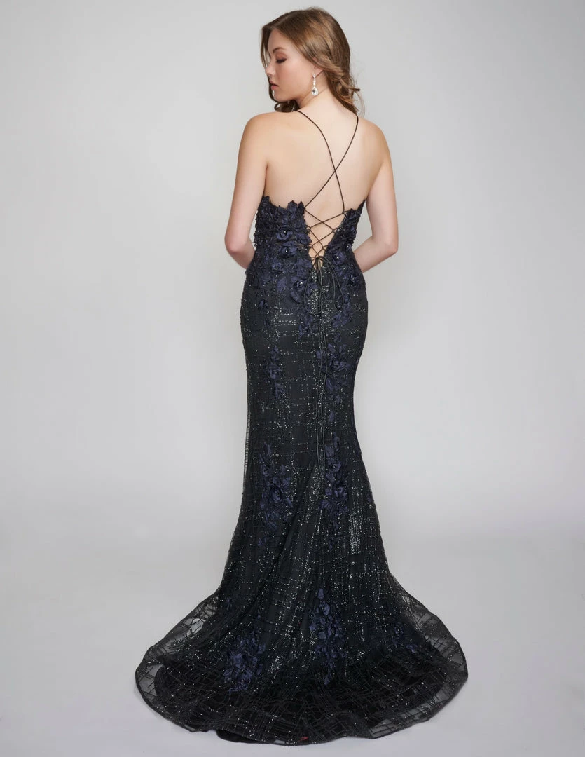Nina Canacci 5209 Long Glitter Lace Formal Prom Dress Pageant Gown Backless Corset 3D Floral Lace