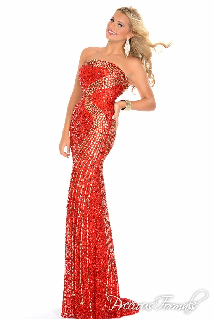 Precious Formals P 9355 Â Charcoal is a fitted straight sequin pageant dress with a swirl of AB Crystal rhinestones cascading from the strapless sweetheart neckline. Prom Dress Formal Gown
