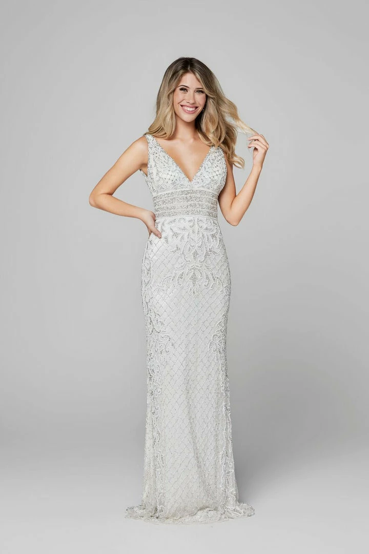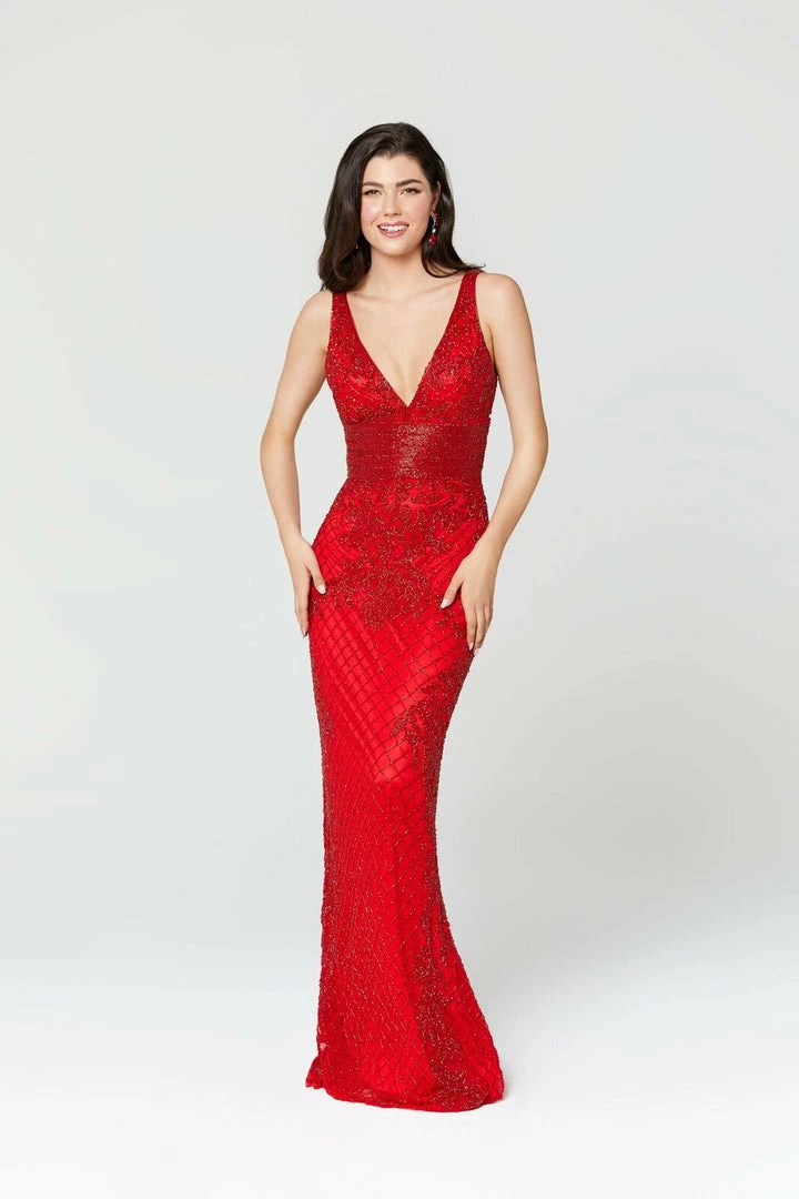 Primavera Couture 3425Β is a Yellow Beaded Prom Dress, Pageant Gown, Wedding Dress & Formal Evening Wear gown. This is a fully beaded prom dress with a v neckline and horizontal beaded high waistline.Β Β