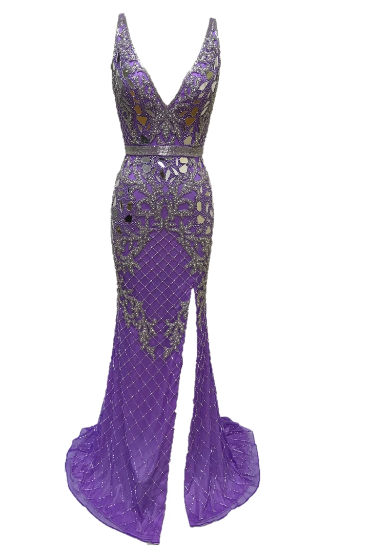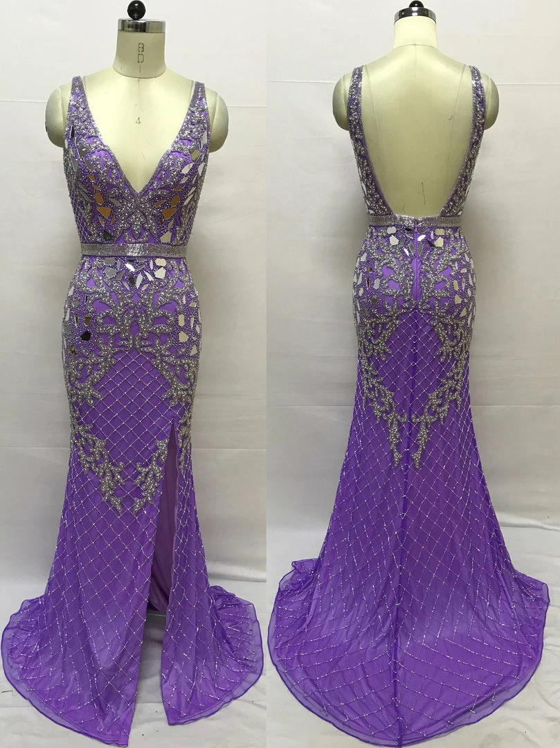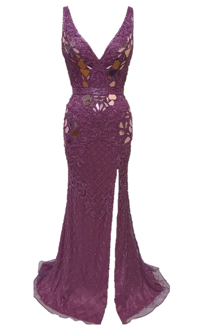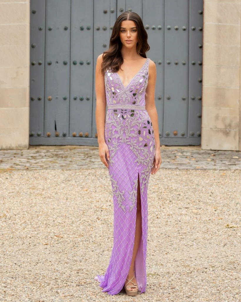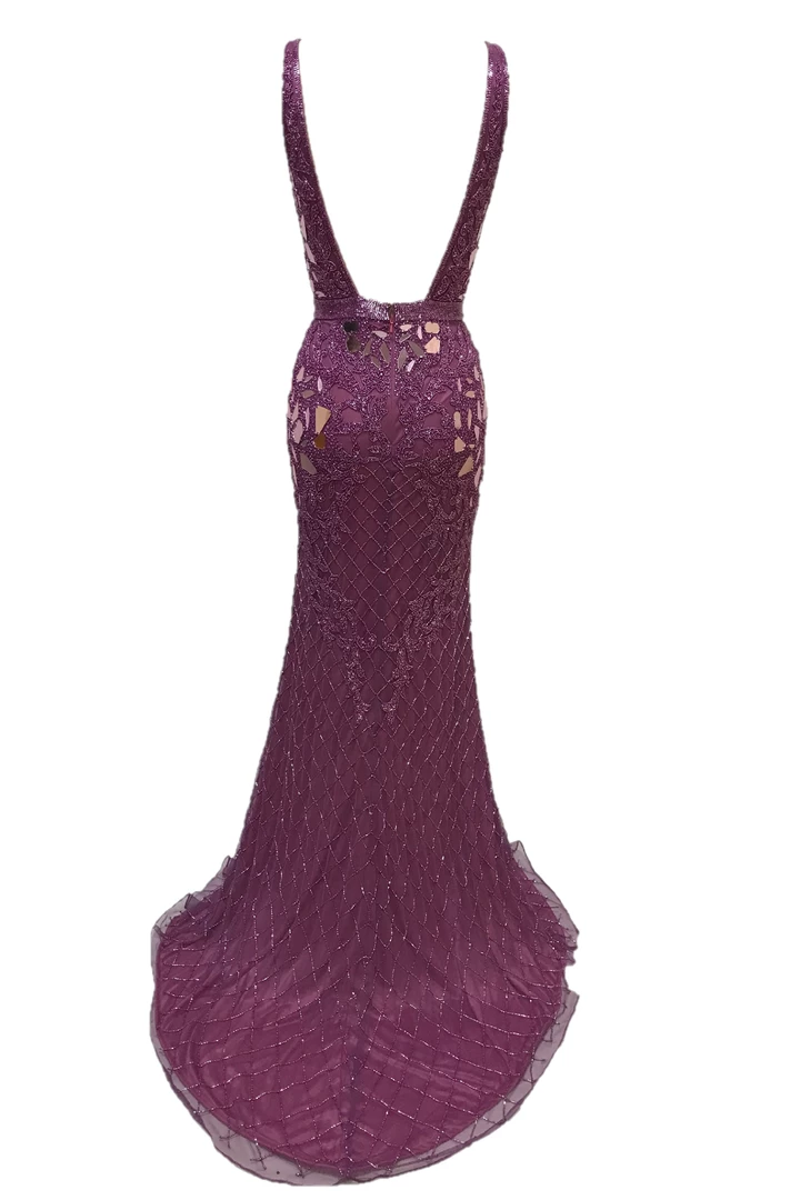 Primavera Couture 3640 is a stunning Long Fitted Formal Evening Gown. Great for Prom, Pageants & More! V Neckline with an open back. Fully beaded & Embellished with Cut Glass Accents along the fitted bust. Floral scroll details with beading & Sequins. Slit in skirt. Great wedding reception dress in Ivory!