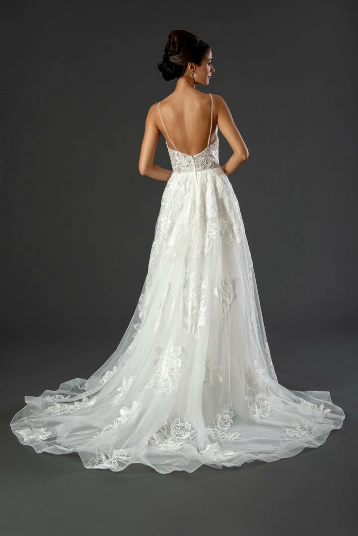 Stella Couture 21082 Long A Line off white Lace V Neck Prom Wedding Dress