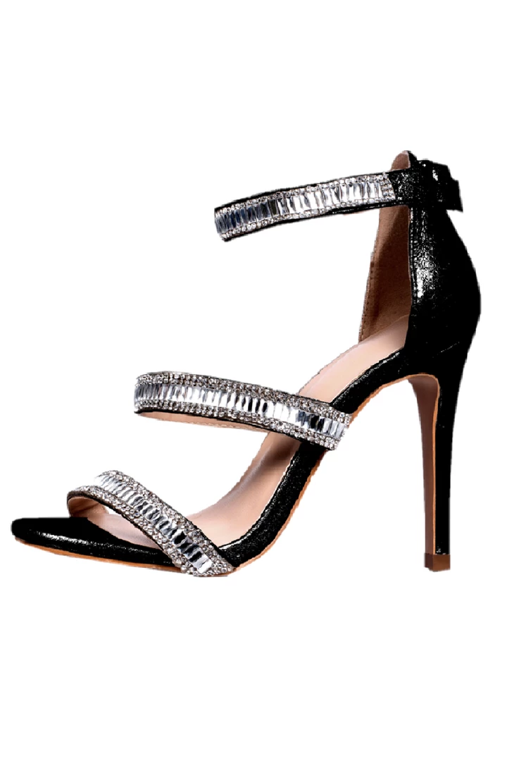 Sweeties ELLA Black Cut Glass Crystal Embellished Straps. This High heel Pump features an open toe design with an adjustable ankle strap. Formal Shoe 3.5″ High heel