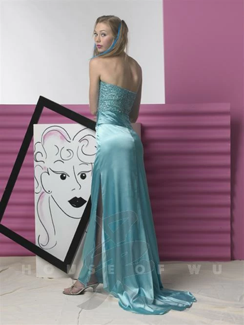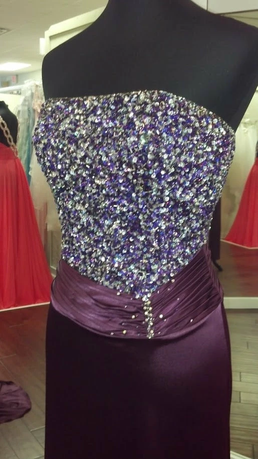 Tiffany Designs 6619 Long Cobalt Satin Beaded Prom Dress Formal Gown Size 4