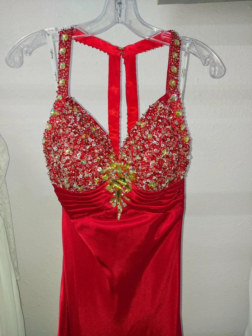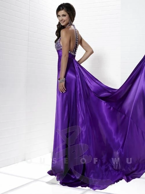 You’ll sparkle the night away in Tiffany Exclusive 46833. This charmeuse Tiffany Exclusive dress features a sweetheart neckline with beaded halter straps, a fitted bodice encrusted with beads and a large center jewel, a low open back with jeweled center straps and a long slim flare skirt with a flirty back float. This Tiffany Exclusive dress is perfect for promising to tie the knot at your engagement, the formal event of the year, observing the holidays, honoring our armed forces at a military ball, capturing the crown at your next pageant, attending a party, making prom unforgettable, making an appearance at a reception, celebrating a friend’s wedding, feeling extraordinary at your winter formal, or any once in a lifetime event you may be attending.