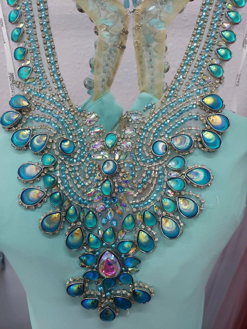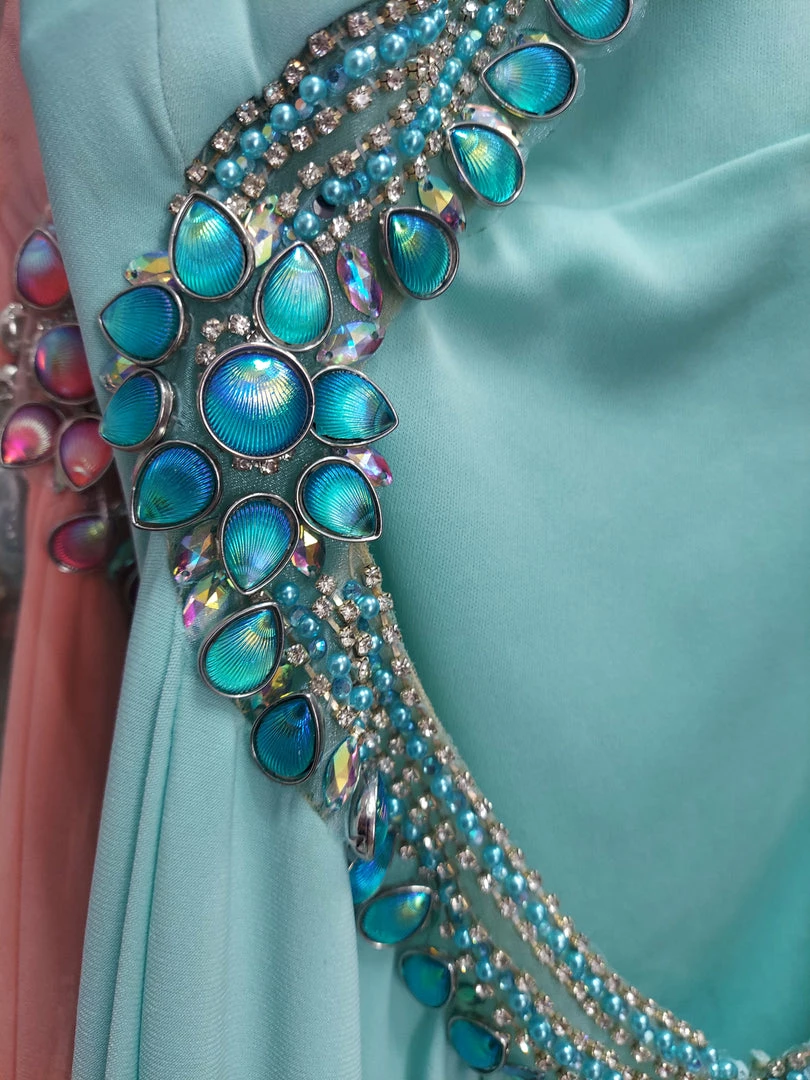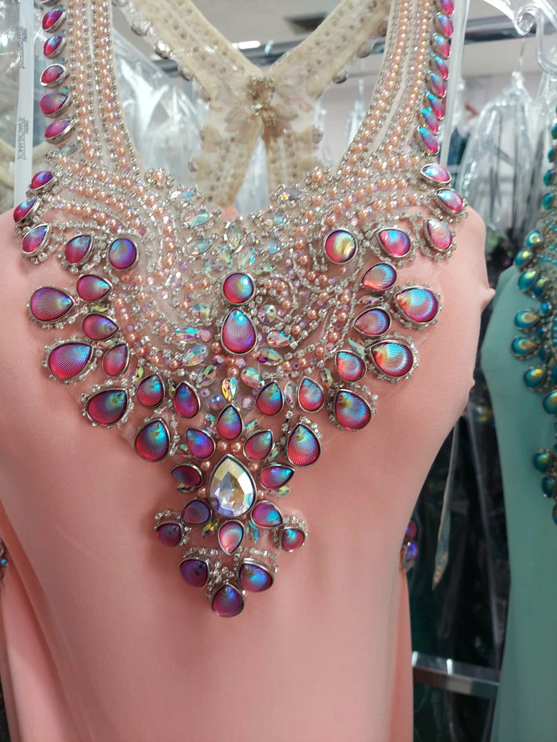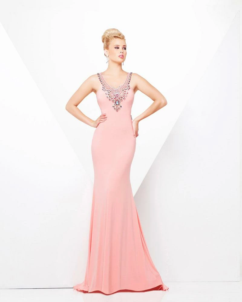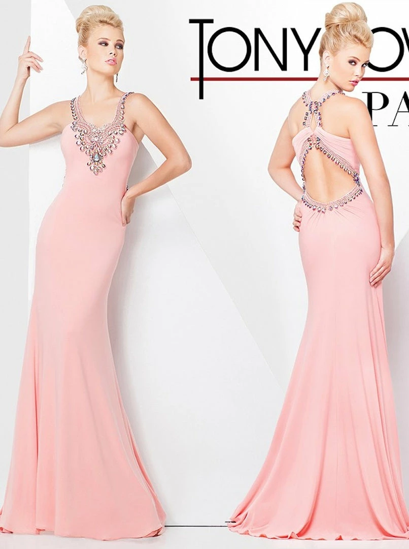Tony Bowls Paris long fitted Jersey Backless Dress. Formal prom and Pageant dress. iridescent embellishments.