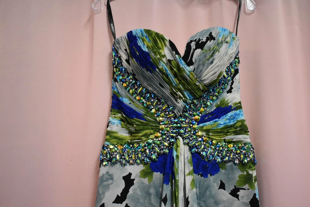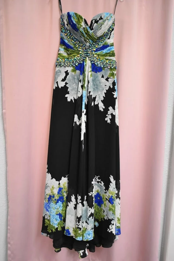 This stunning Chiffon Print Evening gown is available in Size 6 / Multi Print.Â