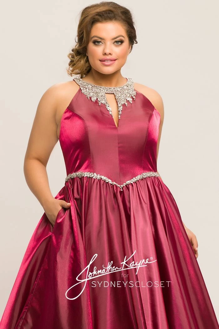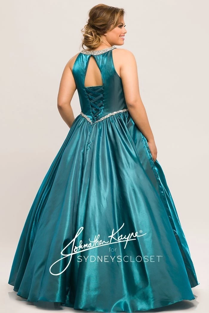 Johnathan Kayne for Sydneys Closet JK2009 Victoria crystal high neckline iridescent A line prom dress pageant gown evening gown