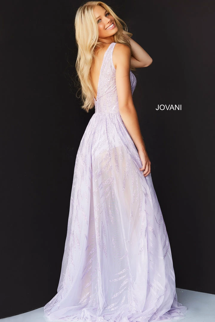 Jovani 06687 Prom Dress Bodysuit. This flashy prom dress has a Sheer Long Embroidered Skirt with a bodysuit underneath. It has a V Neckline a V Back. The bodice has matching shiny metallic embroidery throughout.Â