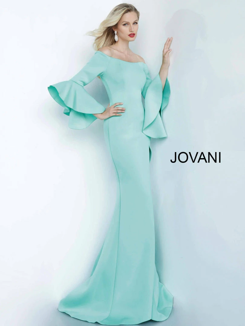 Jovani 1588 off the shoulder bell sleeve long mermaid prom dress evening gown