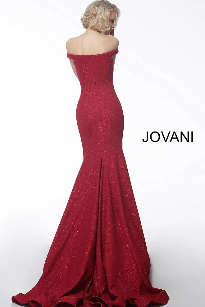 Jovani 55187 off the shoulder glitter waffle mermaid prom dress. Stretch glitter waffle fabric pageant gown, off the shoulder sweetheart neckline, floor length with train, horse hair trim, form fitting silhouette evening gown.