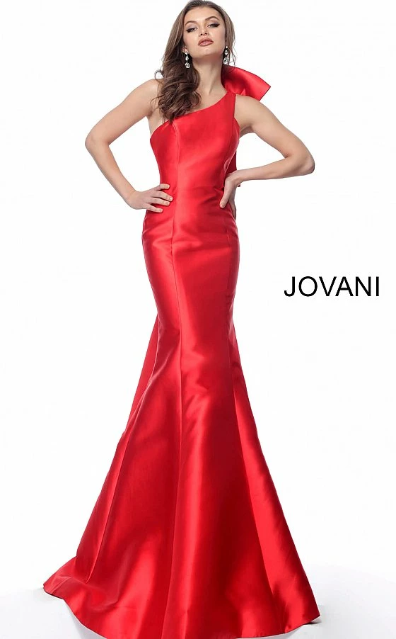 Jovani 62463 One shoulder bow in back long mermaid prom dress evening gown pageant dress