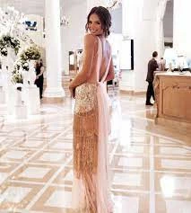 Jovani 65346 Blush Couture Pageant Dress. This is a V neckline long dress with liquid beaded bodice and fringe layers on the long skirt. It features capes that flow off of the shoulders. It has matching sheer godets on the skirt.Â