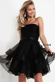 Jovani Kids K03524 This is a ruffle skirt formal dress for girls, tweens and preteens. It has a strapless straight neckline and features a full layered skirt with horsehair trim for added fullness. Make this your next pick for spring formal or other formal event.