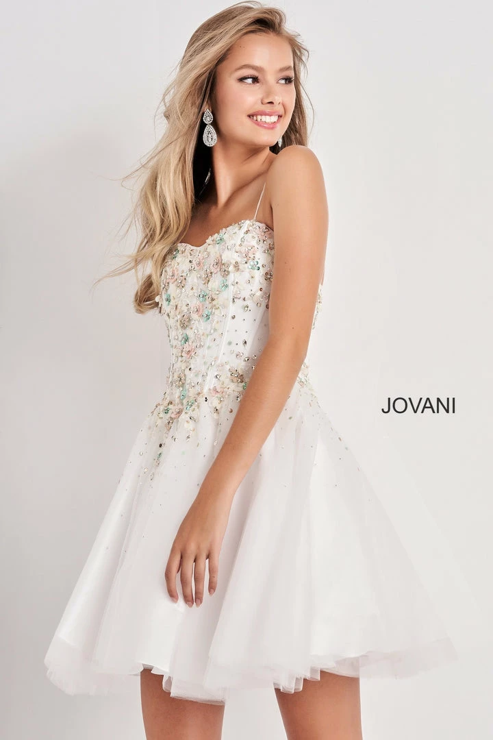 Jovani Kids K62532 Embellished Sweetheart Neckline Girls Party Dress. Sweetheart neckline short girls Fit & Flare Cocktail Party Dress, Embellished Floral Applique & Beading along corset style bodice with boning. spaghetti straps. Flared tulle skirt.Â