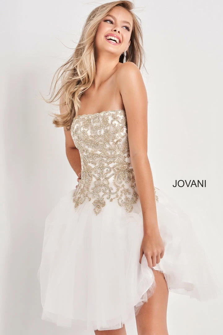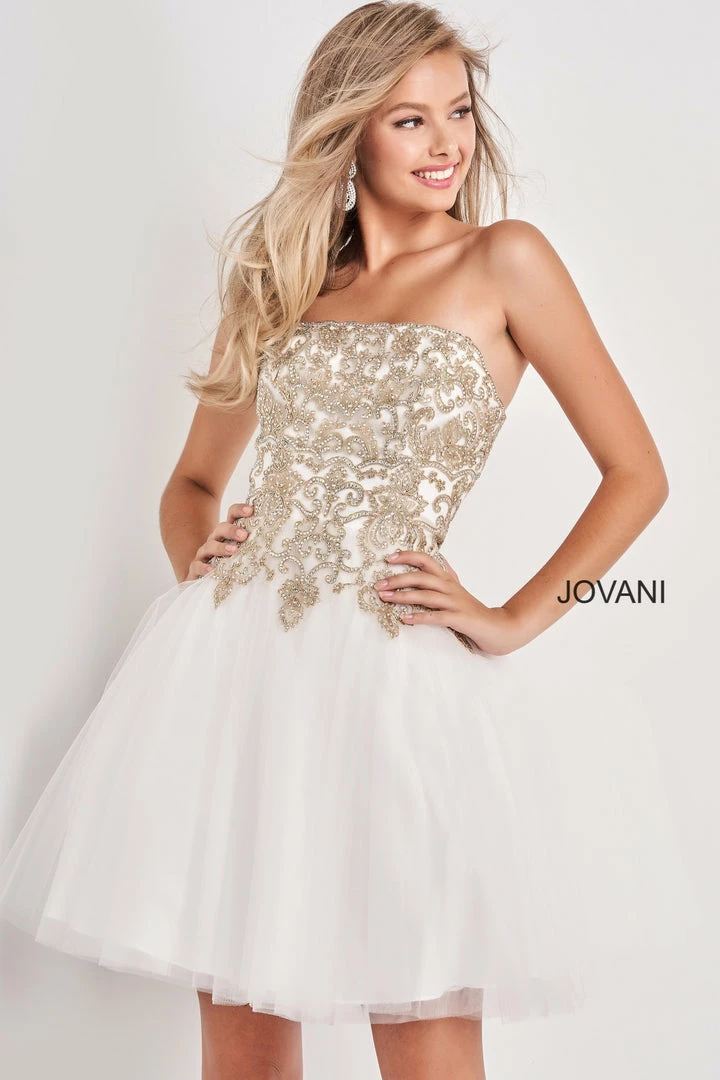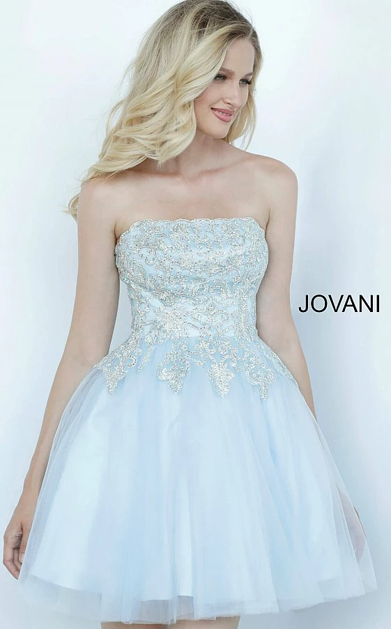 Jovani Kids k66720 is a Short Girls Party Dress, Kids Pageant Gown & Pre Teen Formal Evening Wear gown. This Strapless Straight neckline Girls Gown Features an Embellished Embroidered Applique for a stunning scallop Bedazzled Bodice with a classic look. Flared Tulle skirt.