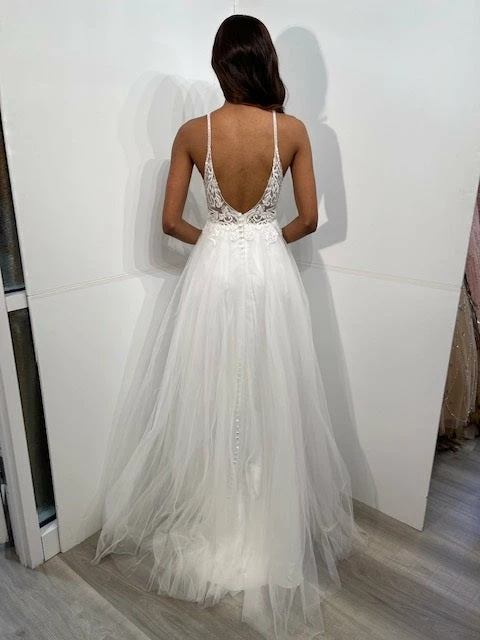 Jovani JVN07595 Sheer Lace A Line V Neck Formal Prom Dress Wedding Gown