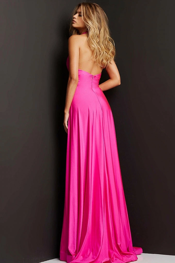 Jovani JVN08640 Long A Line Maxi slit prom dress halter V neck Pockets StretchΒ