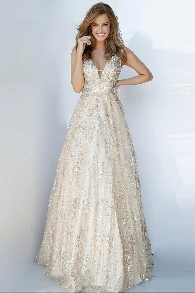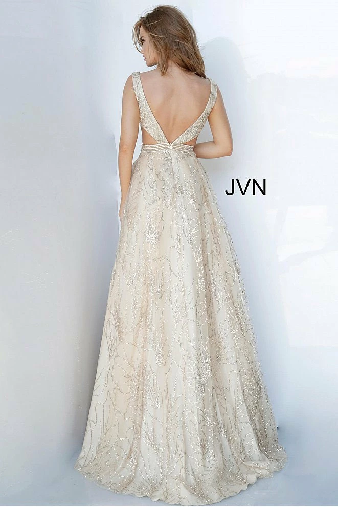 Jovani JVN68659 v neckline glitter a line cutout sides prom dress evening gown ball gownÂ