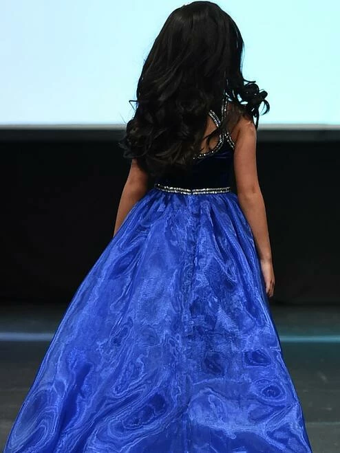 Marc Defang 5036 Girls Velvet Top A Line Pageant Dress Beaded Keyhole Cutout DressÂ