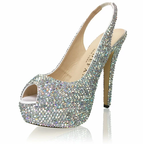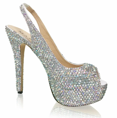 Marc Defang RACHEL AB CRYSTAL Pageant platform heel sling back prom Shoes