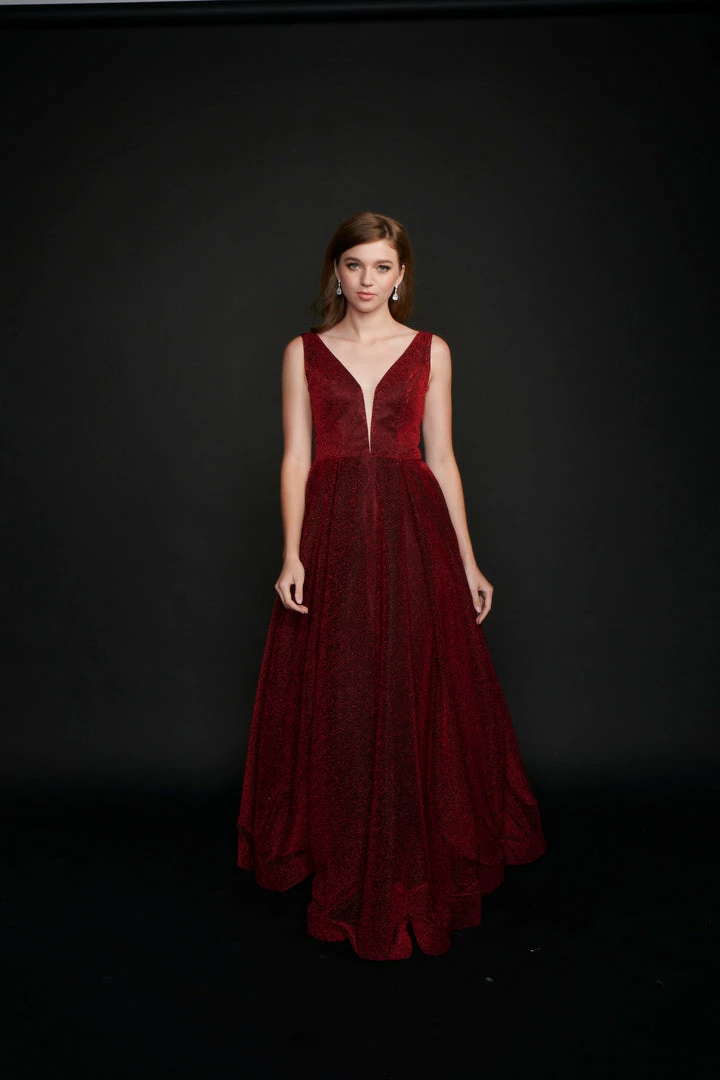 Nina Canacci 5208 Long Ballgown Prom Pageant Gown Shimmer Dress V neck