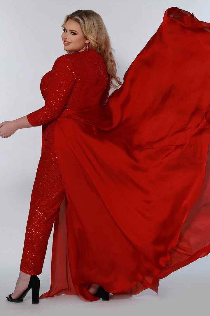 Johnathan Kayne for Sydney’s Closet JK2220 Jumpsuit Sequins Long Sleeves with Overskirt JK 2220Â Â