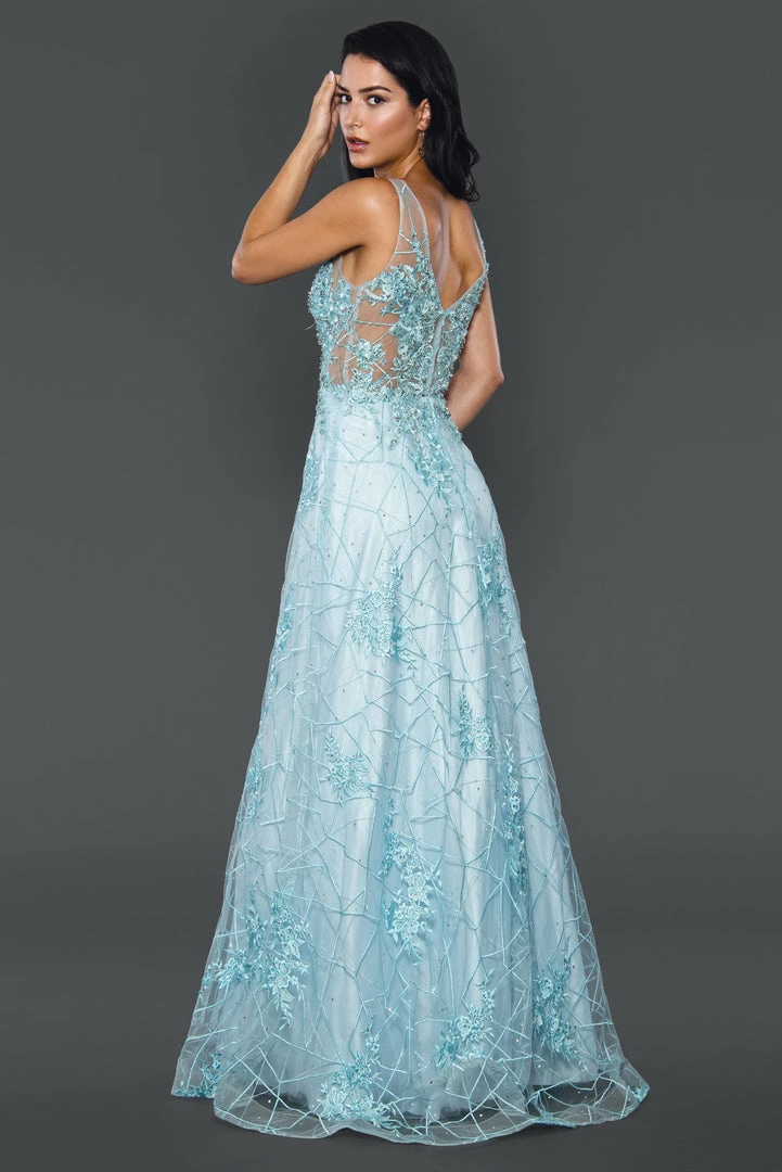 Stella Couture 22048Â Lace A Line Formal Prom Dress Sheer V Neck Ball Gown