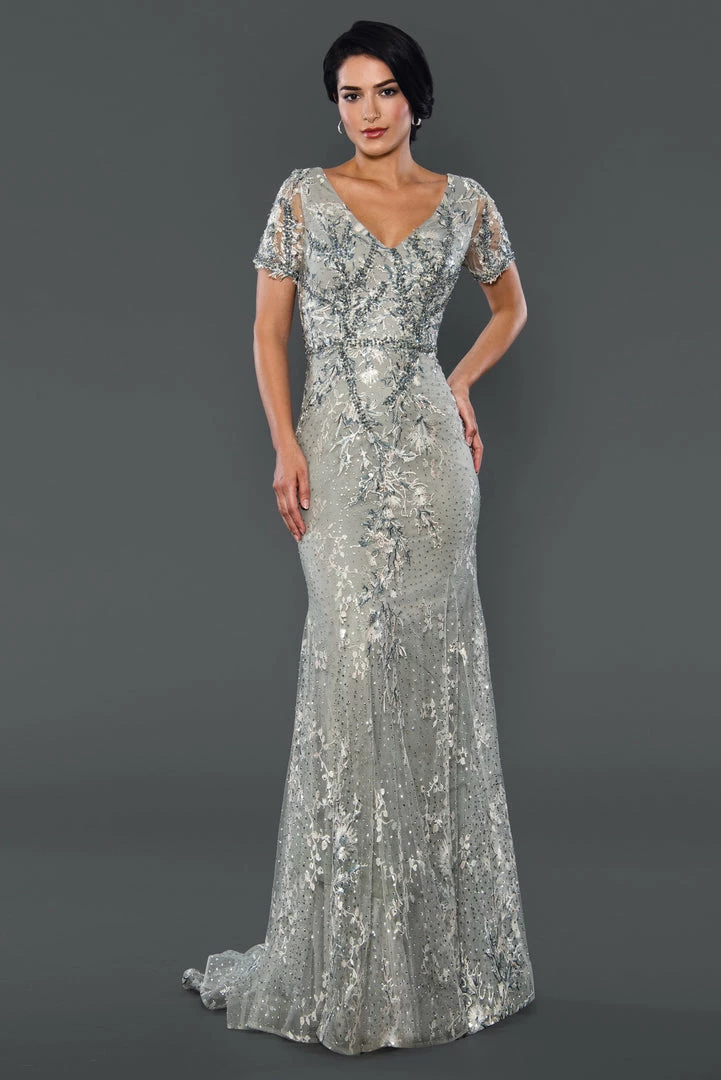 Stella Couture 22062 Long Fitted Formal Dress Short Sleeve Embellished Mother Of