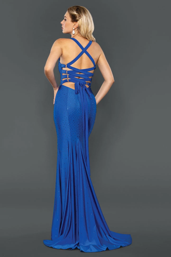 Stella Couture 22072 Long Fitted Corset Lace up Slit Backless Prom Dress Formal Gown