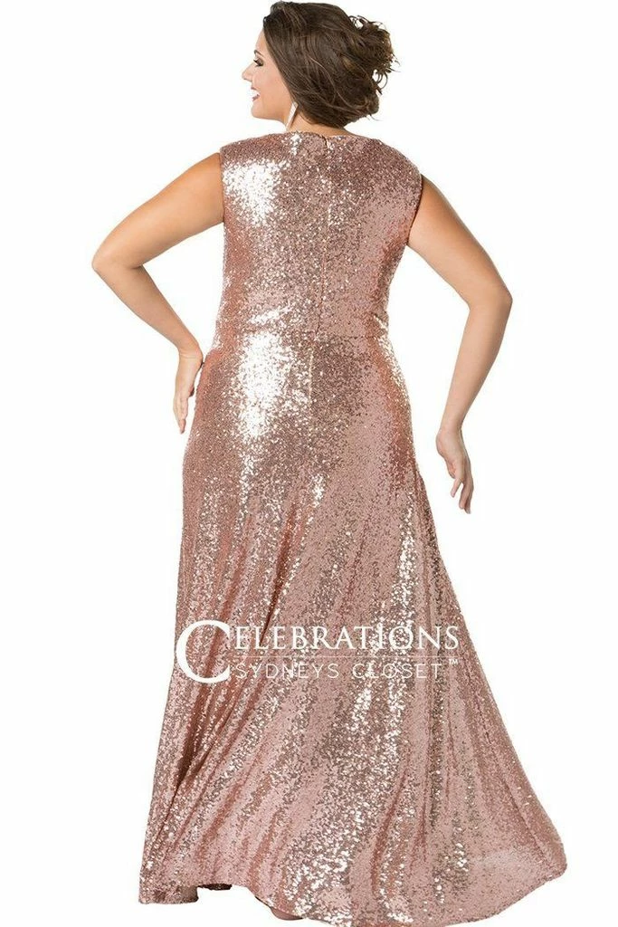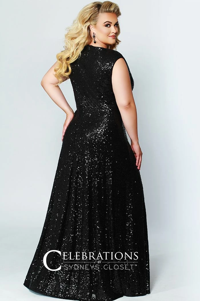 Sydney’s Closet CE1801 – Long Sequin Plus Size Prom Dress. Look red-carpet ready in this glamorous plus size floor-length sequin evening gown. This contemporary sleeveless sequin gown design features bra-friendly straps and a sexy V-neckline. Soft knit lining stretches for an oh-so-comfy fit! Soft-draped bodice accentuates your curves. You’ll be photographed like a movie star at Prom, a Military Ball, or Gala. City Lights
