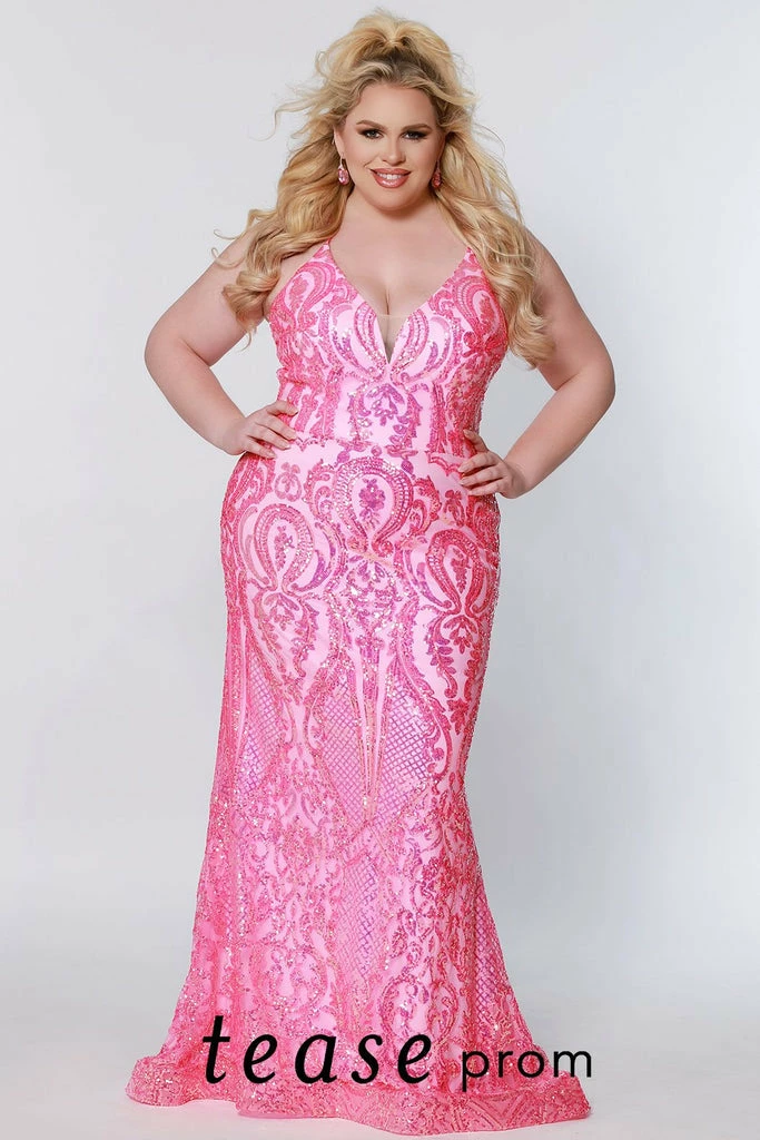 Tease Prom TE2205 Long Fitted Sequin Plus Size Prom Dress Formal Gown Corset