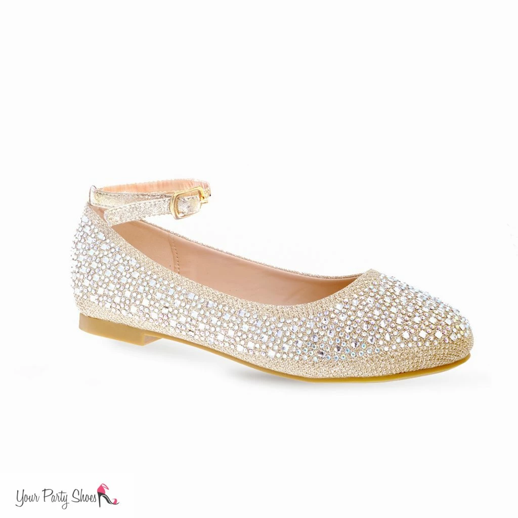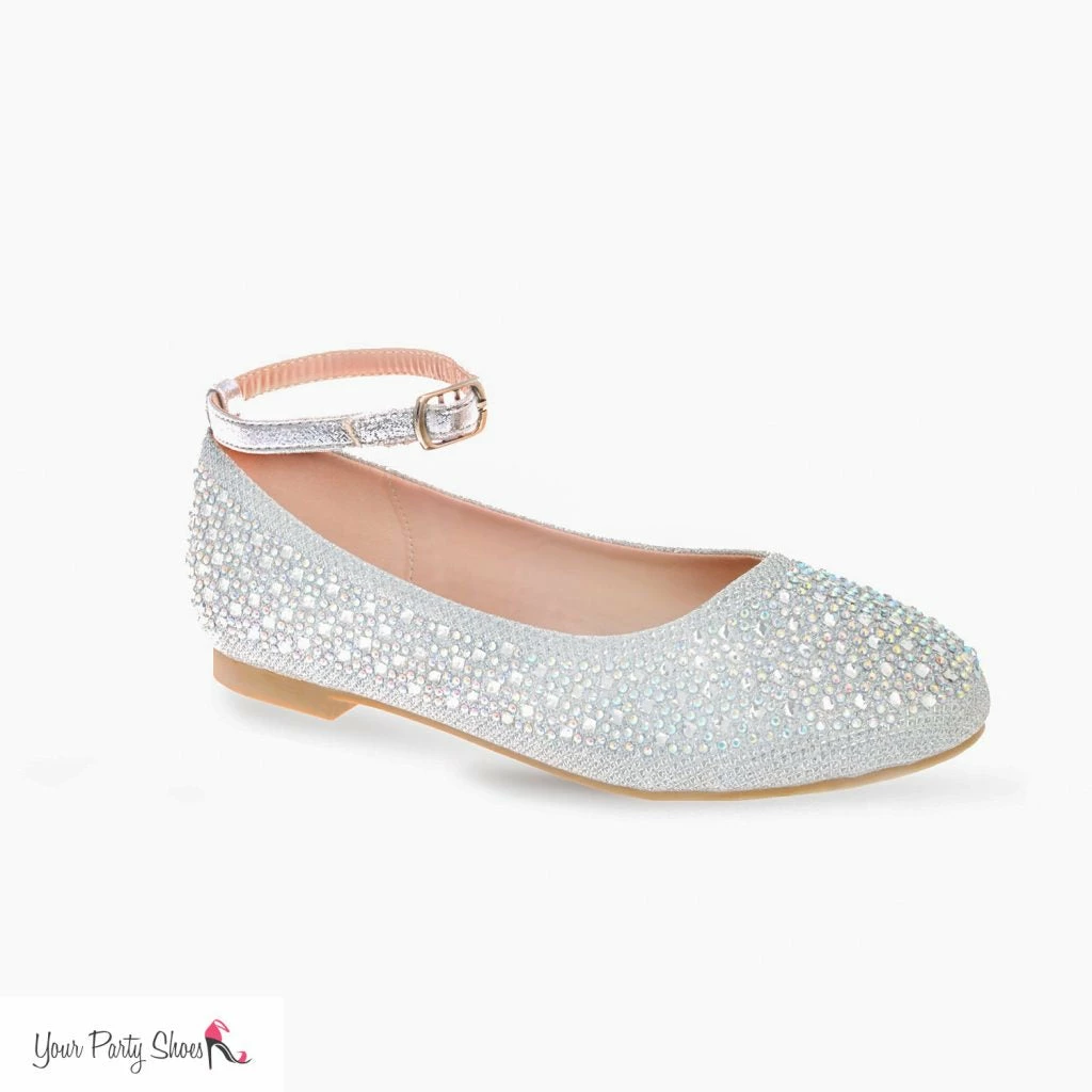 Your Party Shoes Lanie Girls Glitter Heels Embellished with Crystals & Rhinestones. Perfect for any Formal Event!